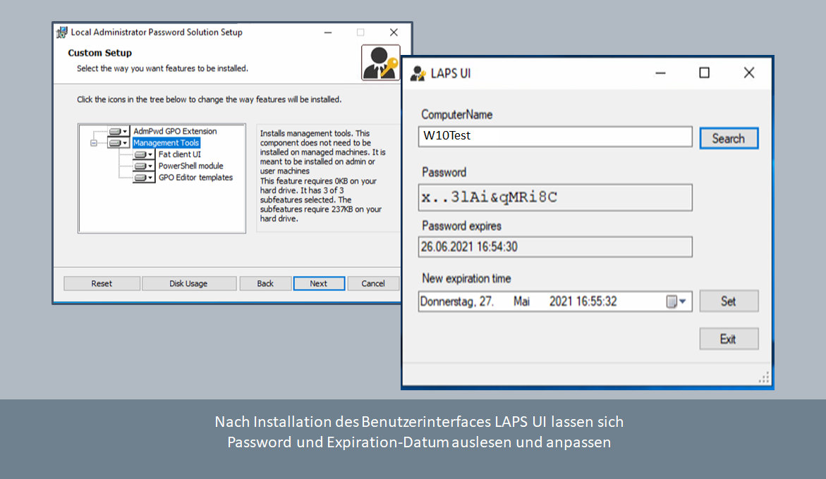 Mit dem von Microsoft kostenlos bereitgestellten Tool LAPS (Local Administrator Password Solution) können die Administratoren der Domäne zentral das lokale Kennwort des Administratoren-Accounts auf dem dezentralen Computer-Endgerät managen: